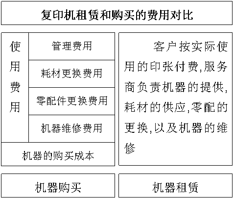 六.购机者遇到稍大点的故障报告商家后一般需要好几天才能得到解决这样就极大的影响了工作造成不必要的损失而租赁公司在接到故障报告后。4小时内解决问题。对复印量大工作繁忙维修路程远信誉良好的贵宾客户可免费提供备用机以保证客户工作的高度延续性。因此租用复印机比自购复印机更加省钱更加划算实乃每个精明用户的明智之举。